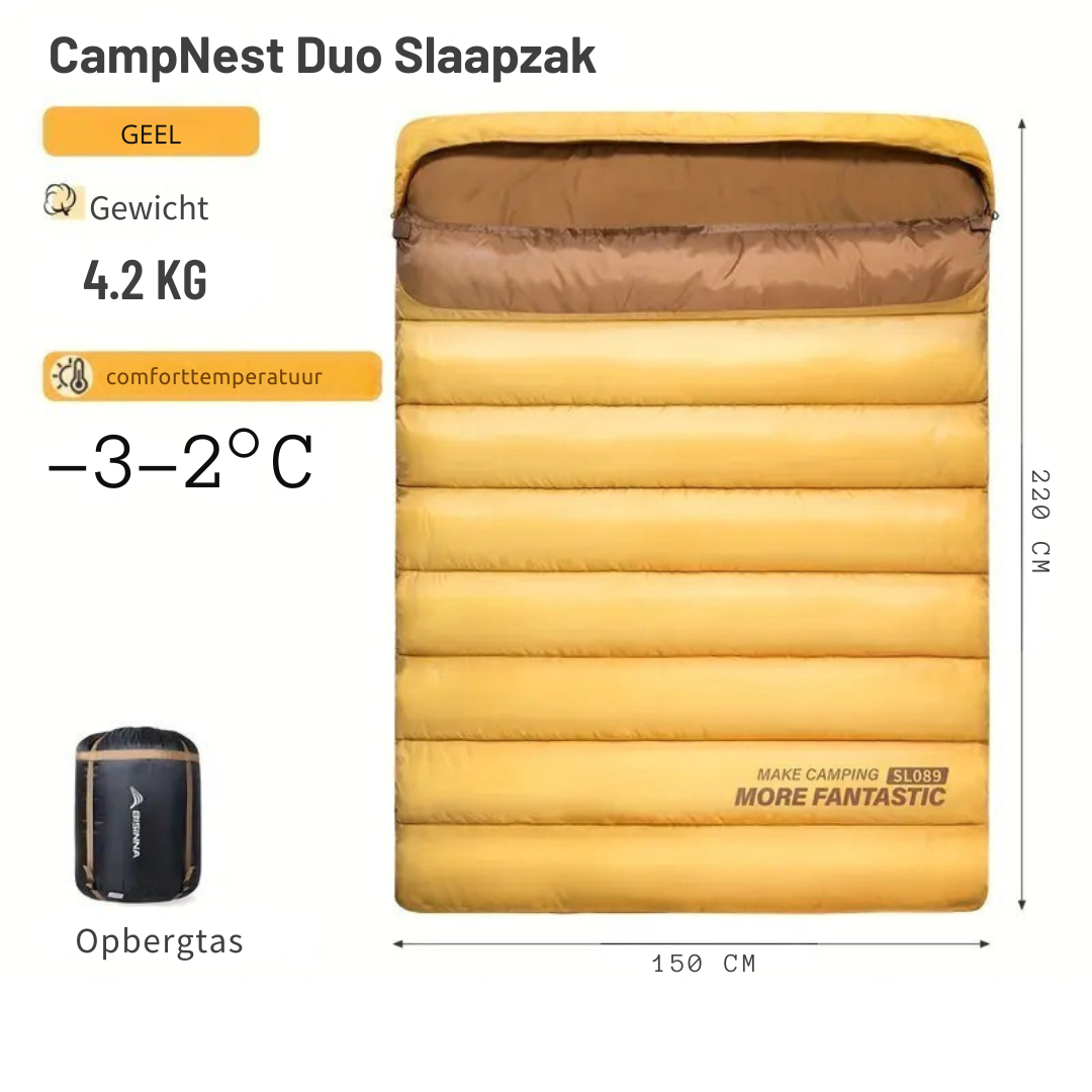CampNest Duo Slaapzak – Dubbele Slaapzak voor 2 Personen, Warm & Draagbaar voor Kamperen en Outdoor Avonturen