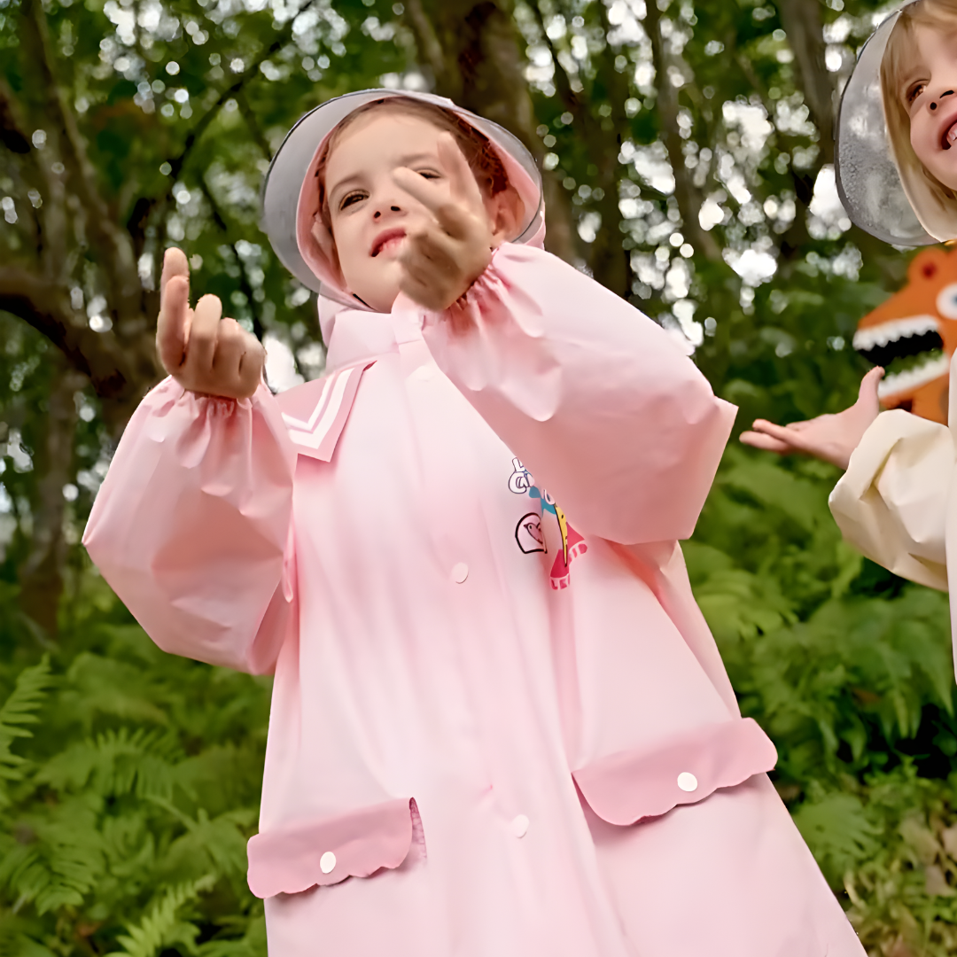 De LittleRainGuard is een vrolijke, veilige en waterdichte kinderregenjas voor meisjes én jongens . Dankzij het lichte nylon, de transparante capuchonrand en de extra bewegingsruimte blijft je soort droog én comfortabel tijdens wandelen, fietsen en buitenspelen.